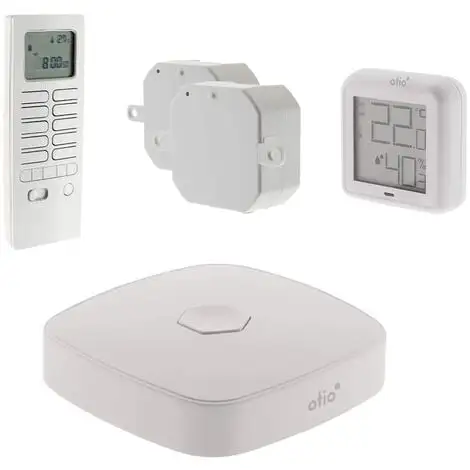 Ce pack de démarrage OtioHome a été spécialement conçu pour vous permettre de contrôler et réguler la température de vos radiateurs en local ou à distance. Compatible avec les assistants vocaux Amazon Alexa et Google Home, il est constitué de deux modules récepteurs pour chauffage, d&,39;un thermomètre hygromètre connecté, d&,39;une télécommande avec fonction thermostat et d&,39;une passerelle OtioHome. Ce pack vous permettra d&,39;allumer, éteindre et programmer à distance vos radiateurs électriques d&,39;un seul geste. Grâce à la box OtioHome et au thermomètre hygromètre connecté, vous pourrez définir des scénarios personnalisés pour automatiser le fonctionnement de votre chauffage depuis votre smartphone. Piloter intelligemment un chauffage électrique d’appoint, un ventilateur, un humidificateur ou déshumidificateur devient possible.