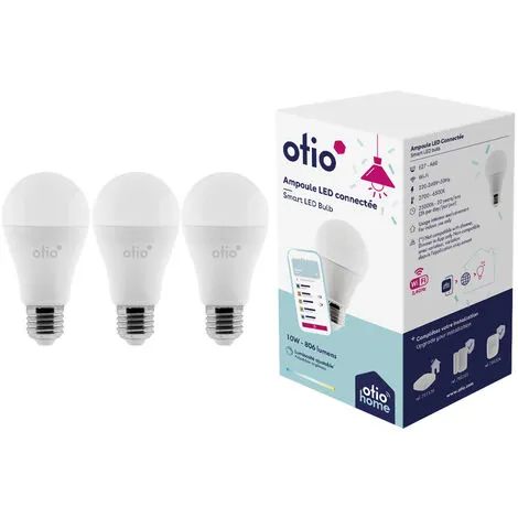 Ce pack de trois ampoules LED WIFI vous apporte un éclairage connecté au sein de votre habitat et vous permet de bénéficier de millions de nuances de lumière blanche. Grâce à l&,39;application gratuite OtioHome, vous pourrez personnaliser votre intérieur et contrôler l’intensité ou le rendu lumineux de vos éclairages depuis votre smartphone. Vous pouvez ainsi piloter vos luminaires chez vous depuis votre smartphone ou à distance par WiFi.