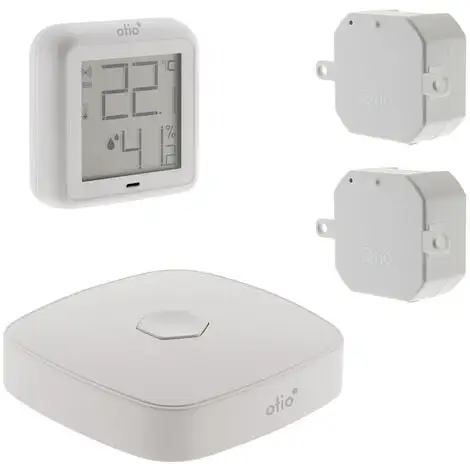 Ce pack de démarrage OtioHome a été spécialement conçu pour vous permettre de contrôler et réguler la température de vos radiateurs en local ou à distance. Compatible avec les assistants vocaux Amazon Alexa et Google Home, il est constitué de deux modules récepteurs pour chauffage, d&,39;un thermomètre hygromètre connecté et d&,39;une passerelle OtioHome. Ce pack vous permettra d&,39;allumer, éteindre et programmer à distance vos radiateurs électriques d&,39;un seul geste. Grâce à la box OtioHome et au thermomètre hygromètre connecté, vous pourrez définir des scénarios personnalisés pour automatiser le fonctionnement de votre chauffage depuis votre smartphone. Piloter intelligemment un chauffage électrique d’appoint, un ventilateur, un humidificateur ou déshumidificateur devient possible grâce à l’association de ce capteur, de la passerelle OtioHome et des actionneurs compatibles.